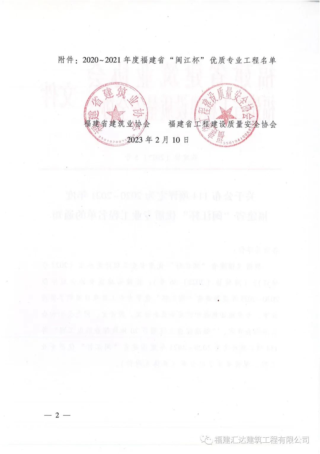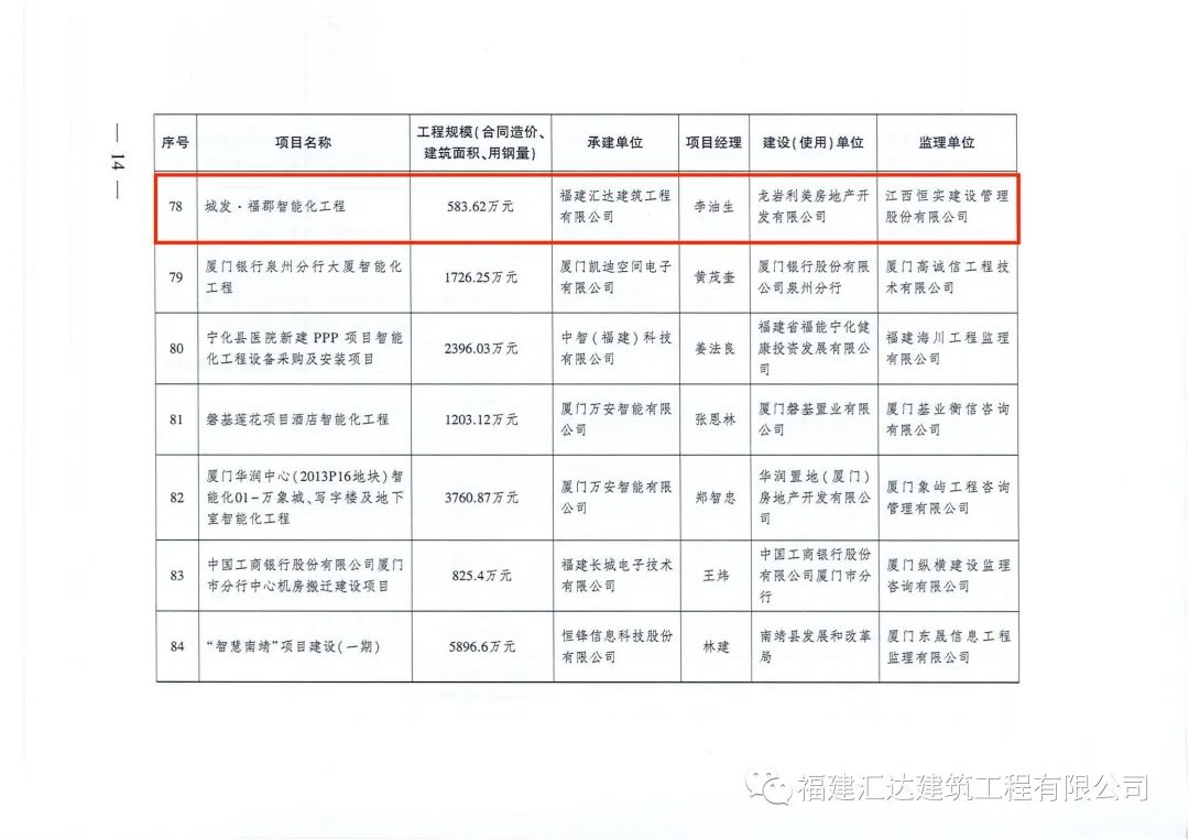我司承建的城发·福郡智能化项目喜获“闽江杯”优质专业工程